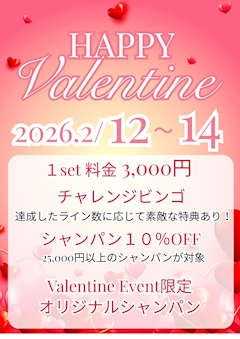 こんばんはレリアンのせいかです🦖 2月12日〜14日までバレンタインイベントやります💌👏 ビンゴゲームもあるので楽しいこと間違いなし‼️ いつもよりもお安くもなってるのでお待ちしてます❤️